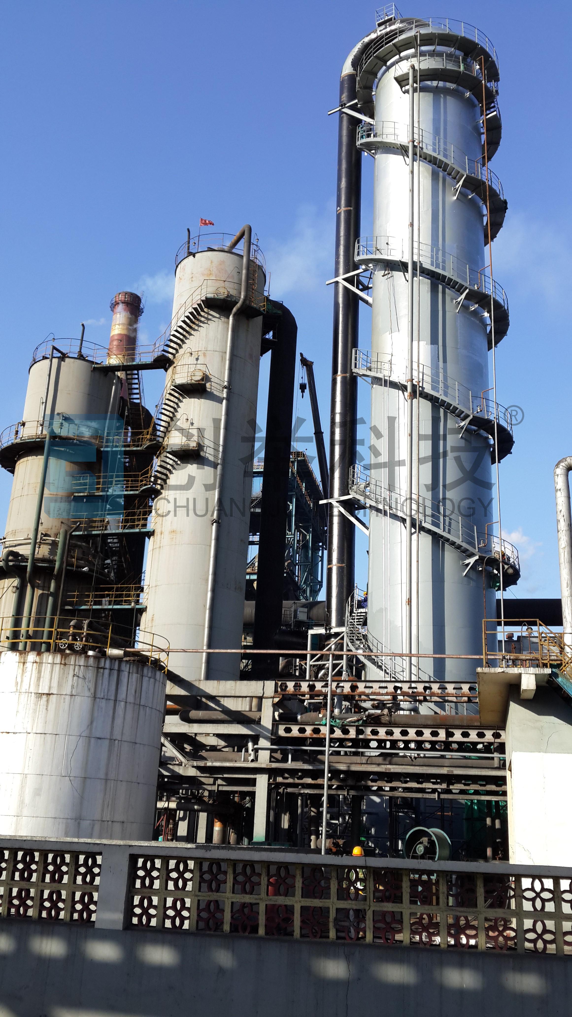 該項目由我公司總包設計和制作。于2013年底完工并投產至今,單塔后煤氣H2S指標≤50mg/Nm3。其煤氣量在1300 00Nm3/h,單塔運行,脫硫塔塔徑達DN9600,此類大直徑設備在國內也屬罕見。我公司克服了塔體與內件設計中的諸多問題,同時結合多年設計和現場運行調試經驗,在設備設計的同時,進一步優化了脫硫工藝,最終一次開車調試成功,得到了業主的認可與贊賞。