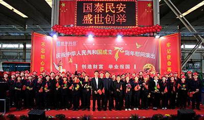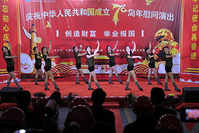 2019年10月12日為慶祝中華人民共和國成立70周年,天津市創(chuàng)舉科技股份有限公司(以下簡稱“創(chuàng)舉公司”)邀請(qǐng)紅楓藝術(shù)團(tuán)舉辦“不忘初心、牢記使命”專場慰問演出。創(chuàng)舉公司中高層領(lǐng)導(dǎo)及子公司一線生產(chǎn)員工近百人出席觀看。