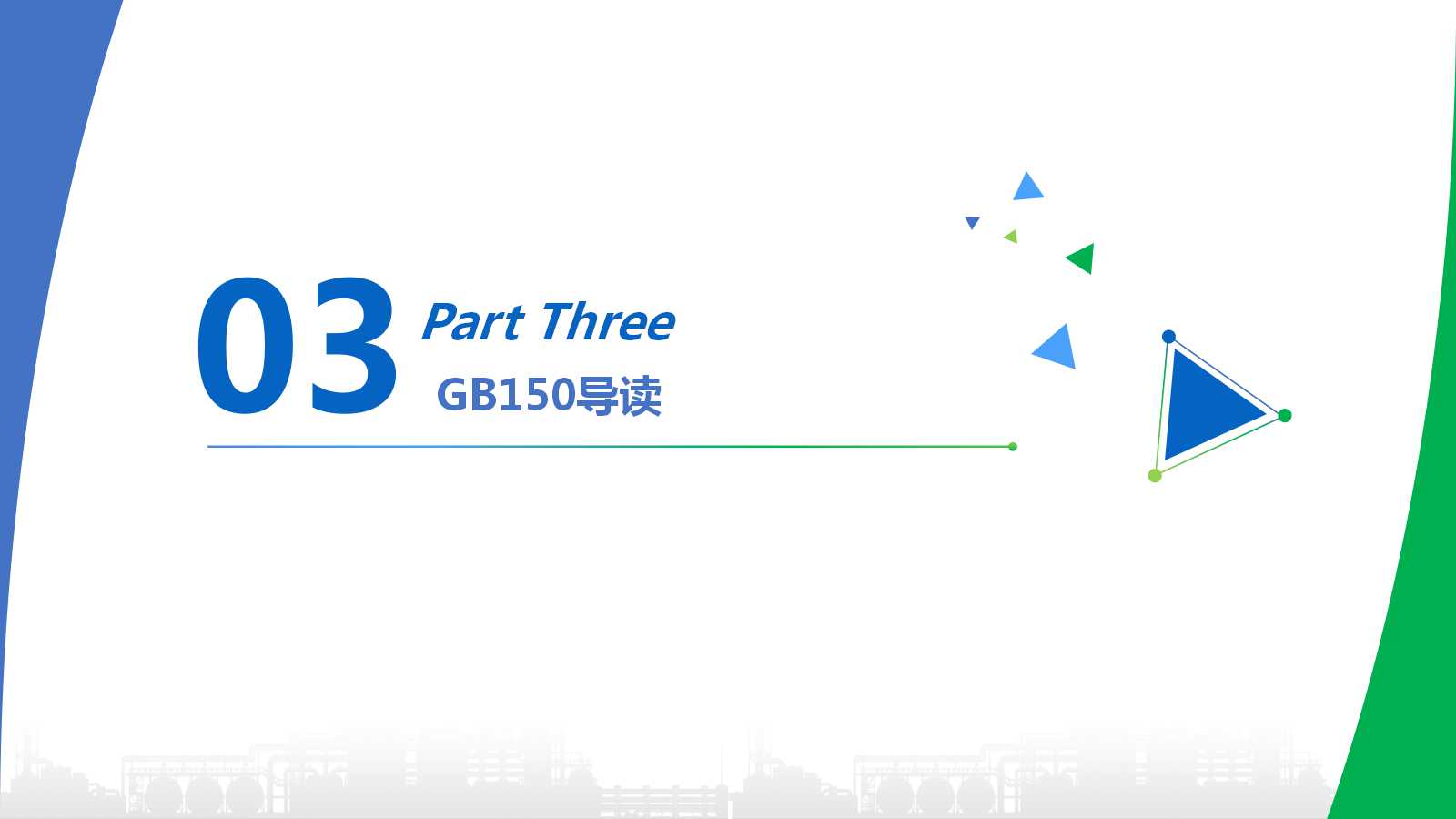 GB150.3-2011設計部分的技術條款絕大多數是用來控制強度、剛度、穩定性等失效模式的。它們給出了壓力容器各主體部分強度、剛度、穩定性所需厚度計算公式。