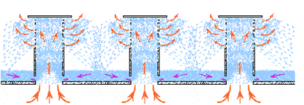 氣液混合物折返從帽罩側孔水平噴出,靠重力在塔板上部空間分離;