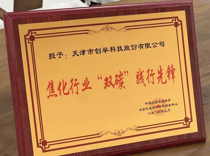 會上舉行頒獎儀式,表彰鼓勵在雙碳目標下,推動綠色低碳轉型發展中作出突出貢獻的企業。天津市創舉科技股份有限公司榮獲焦化行業“雙碳”踐行先鋒企業稱號。