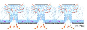 ⑤在罩間,噴出罩體的氣體和液滴對噴、相互碰撞;