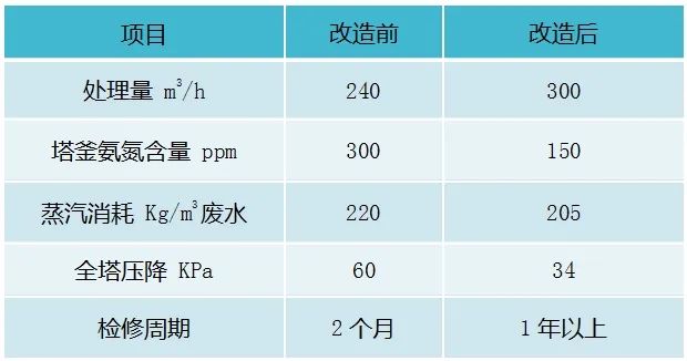 2019年更換為我公司CJVP塔板后,裝置運(yùn)行穩(wěn)定,檢修周期延長(zhǎng),處理量擴(kuò)大25%,蒸汽消耗節(jié)省5%以上,改造前后數(shù)據(jù)對(duì)比如下: