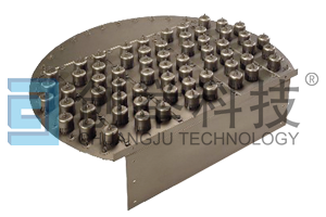 泡罩:又稱泡帽,是泡罩塔板的主要構(gòu)件,有圓形泡罩及條形泡罩二類,目前主要采用圓形泡罩,它的外形如鐘罩狀。在泡罩的壁面開有很多齒縫,其形狀有矩形,三角形及梯形。泡罩內(nèi)有升氣管,在泡罩與升氣管之間形成回轉(zhuǎn)空間。升氣管固定在塔板上,氣相通過(guò)升氣管進(jìn)入回轉(zhuǎn)空間,以一定的噴出速度由齒縫噴出,與塔板上的液體形成鼓泡接觸,進(jìn)行傳質(zhì)過(guò)程。工業(yè)上常用泡罩的下徑有50、80、100、150mm等幾種。