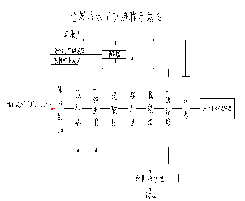 該工藝技術有效解決了高酚氨及高油污水預處理問題。在先除油的情況下,再進行脫氨、脫硫,脫酚等工序,同時對酚和氨進行高效回收。該技術依托CJ-MP系列(膜噴射型塔板)的技術優點,能夠有效提高廢水預處理效率,使之達到生化處理要求或環保要求。